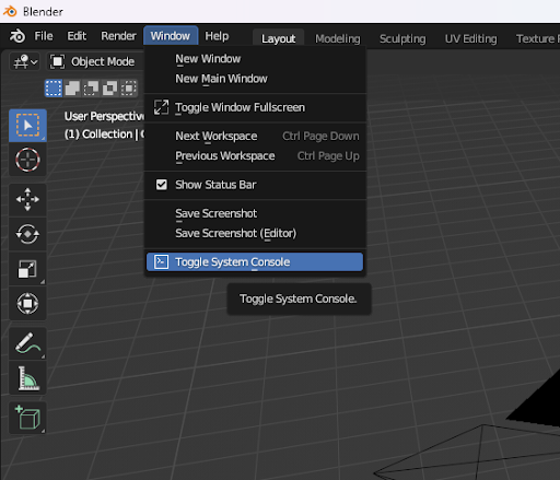 Select `Window / Toggle System Console` to see the progress bars during the installation.